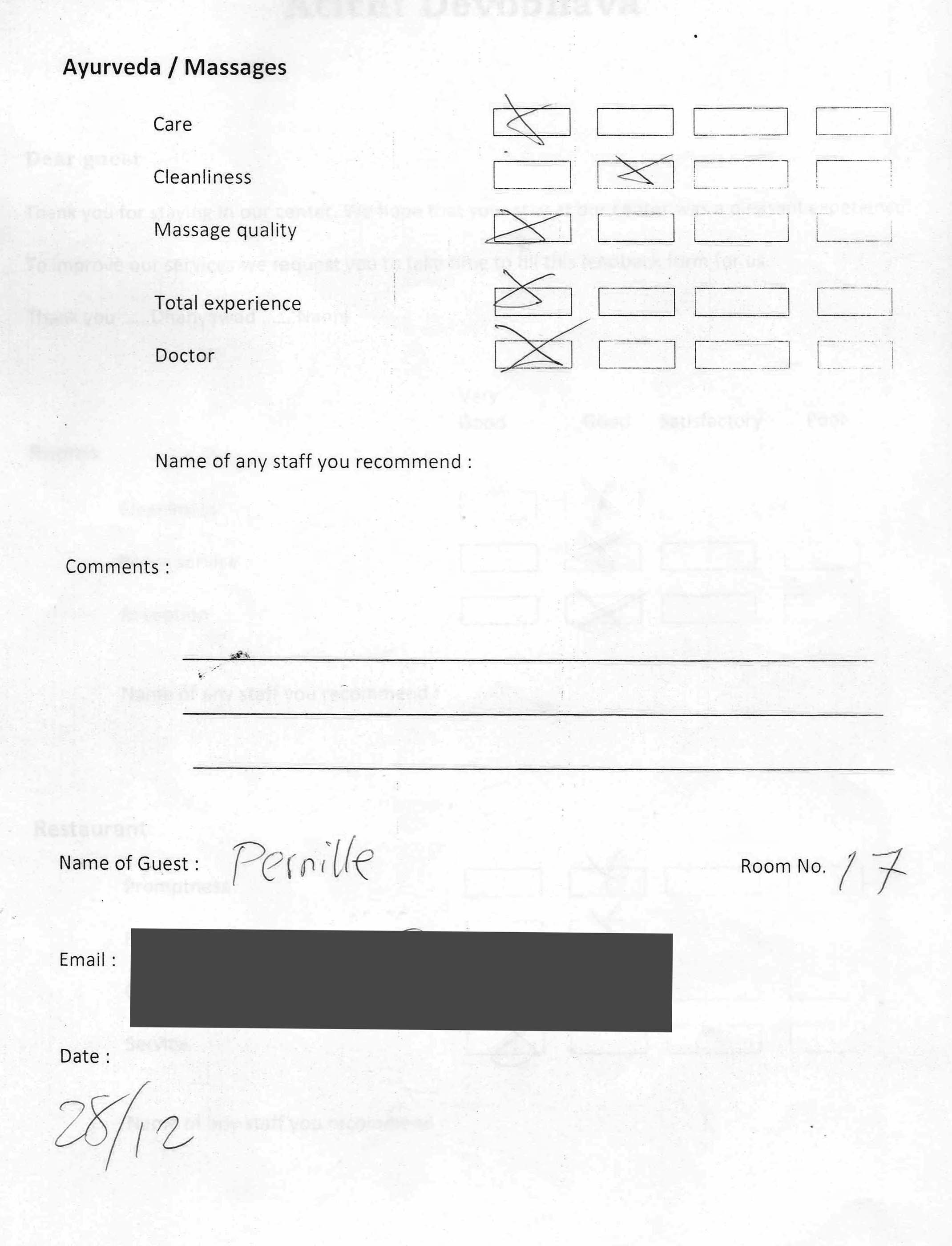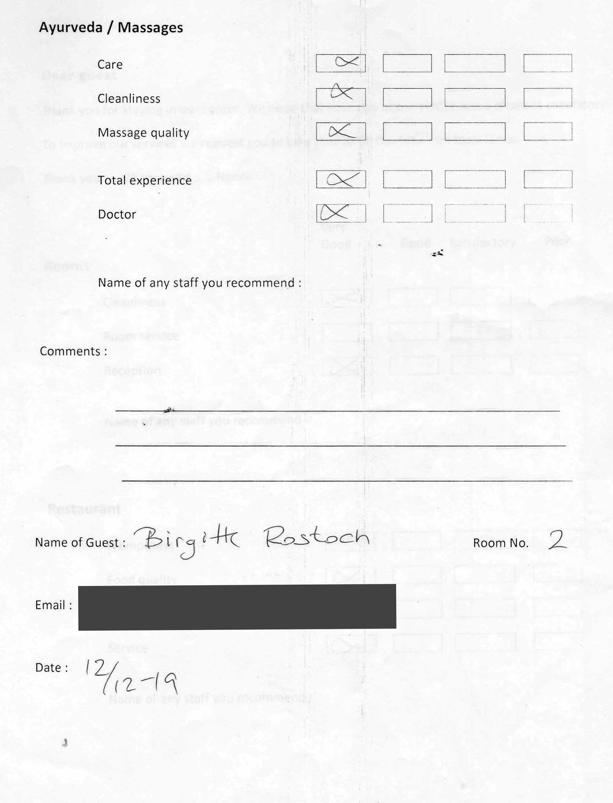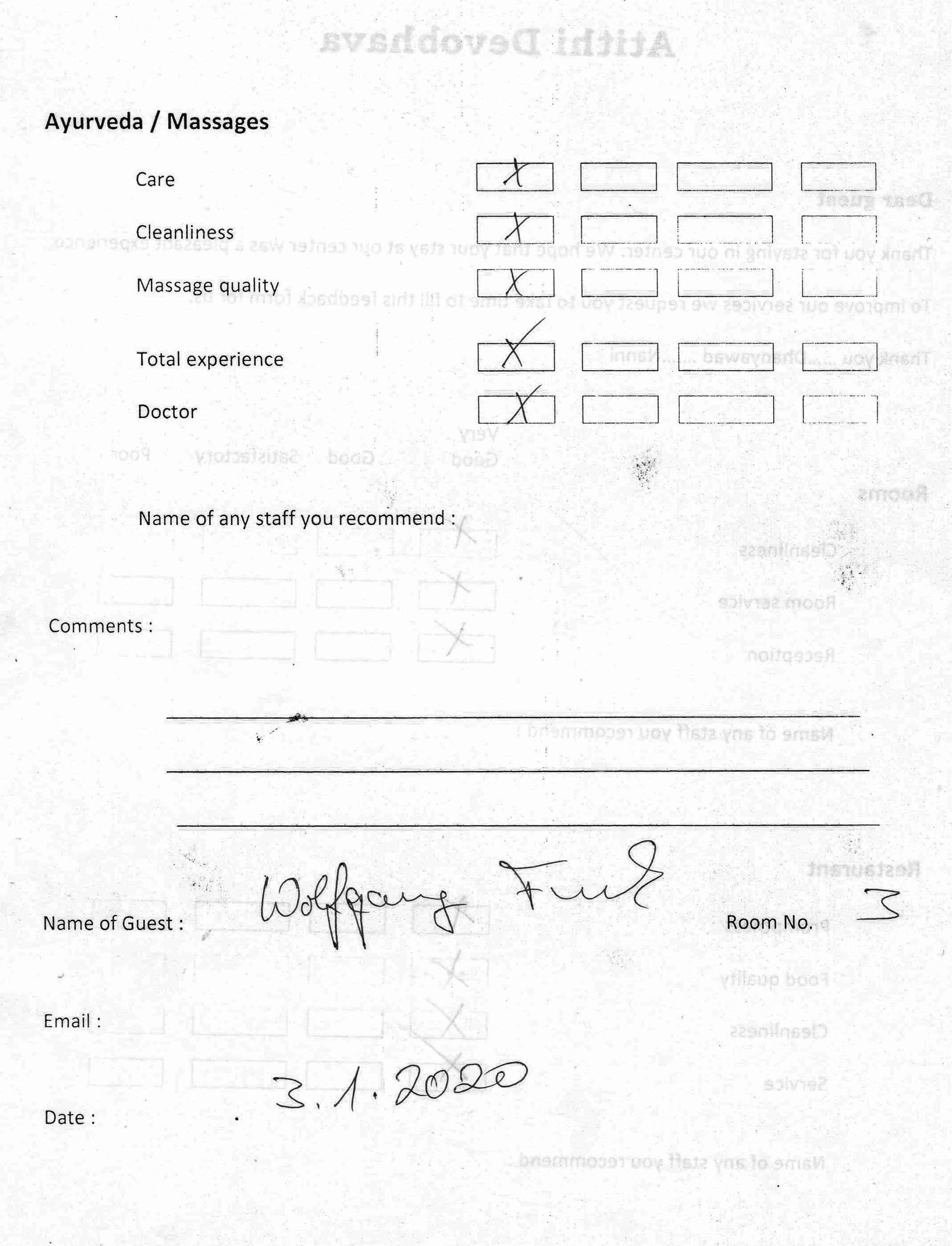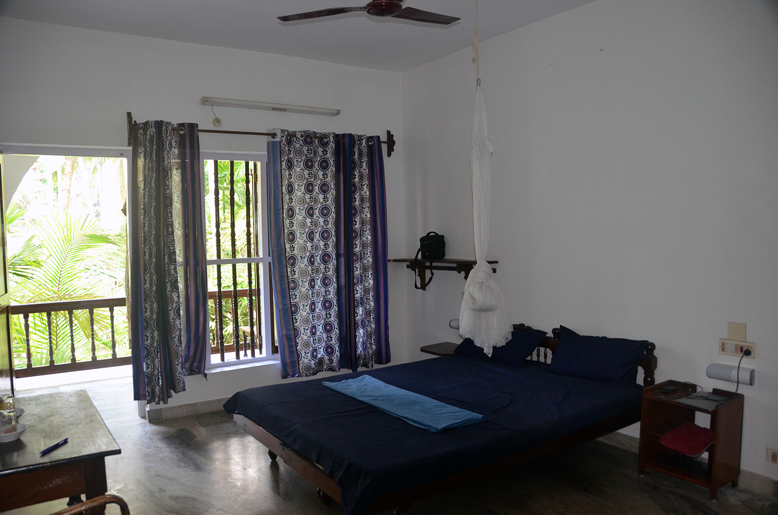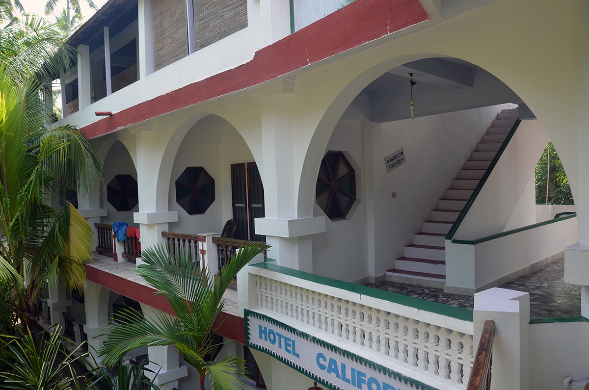 The Arya Ayurvedic Panchakarma Centre is located in Hotel California, only about 2 minutes walking distance from the beach. Our 15 double rooms have a fan, a bath (shower, warm water, WC), and a balcony with view in the luxuriant greenery of our garden and a little lake which has plenty of fish and some water lilies. The hotel is well maintained, has 24 hours security, and the rooms are very clean. The Centre is open the whole year.