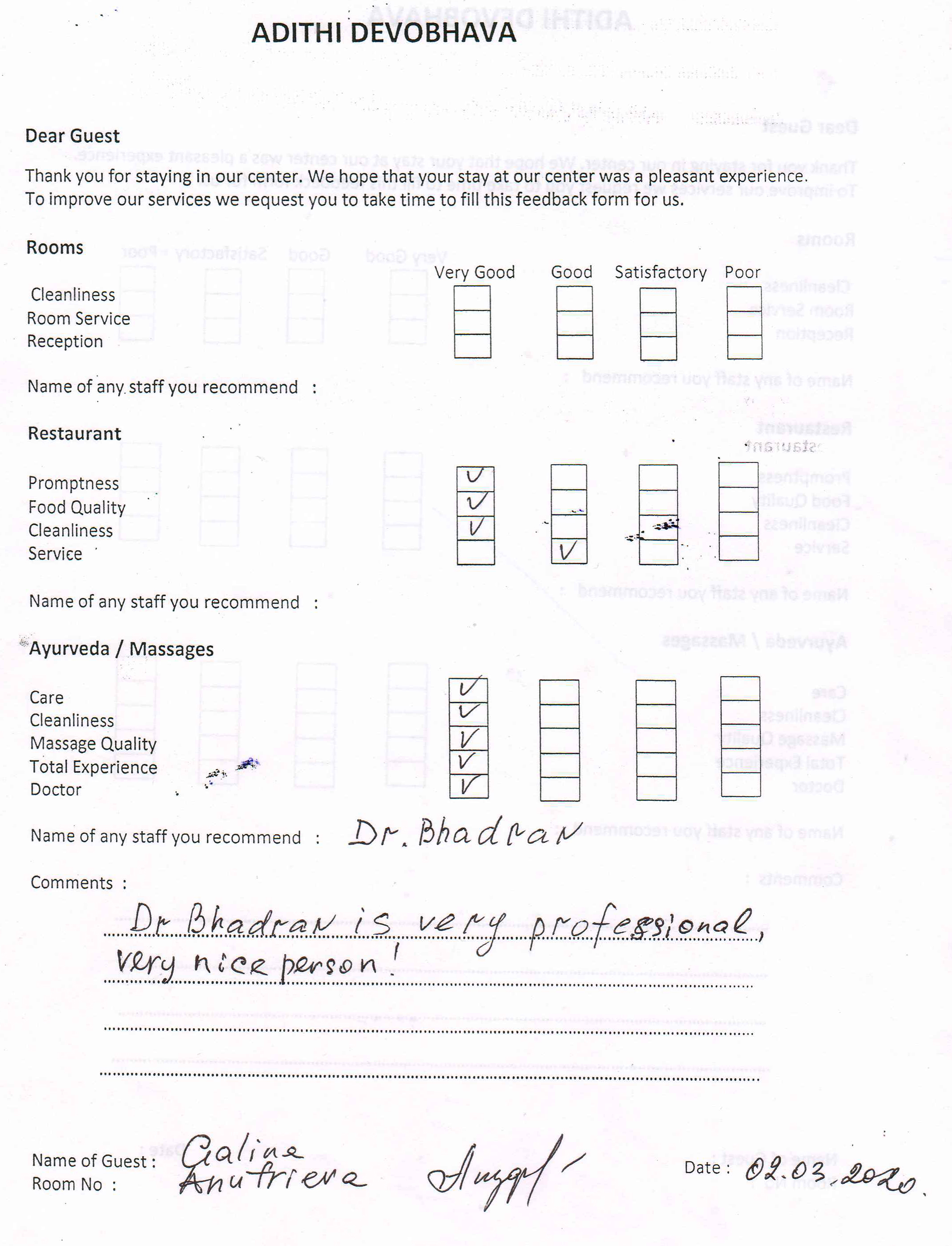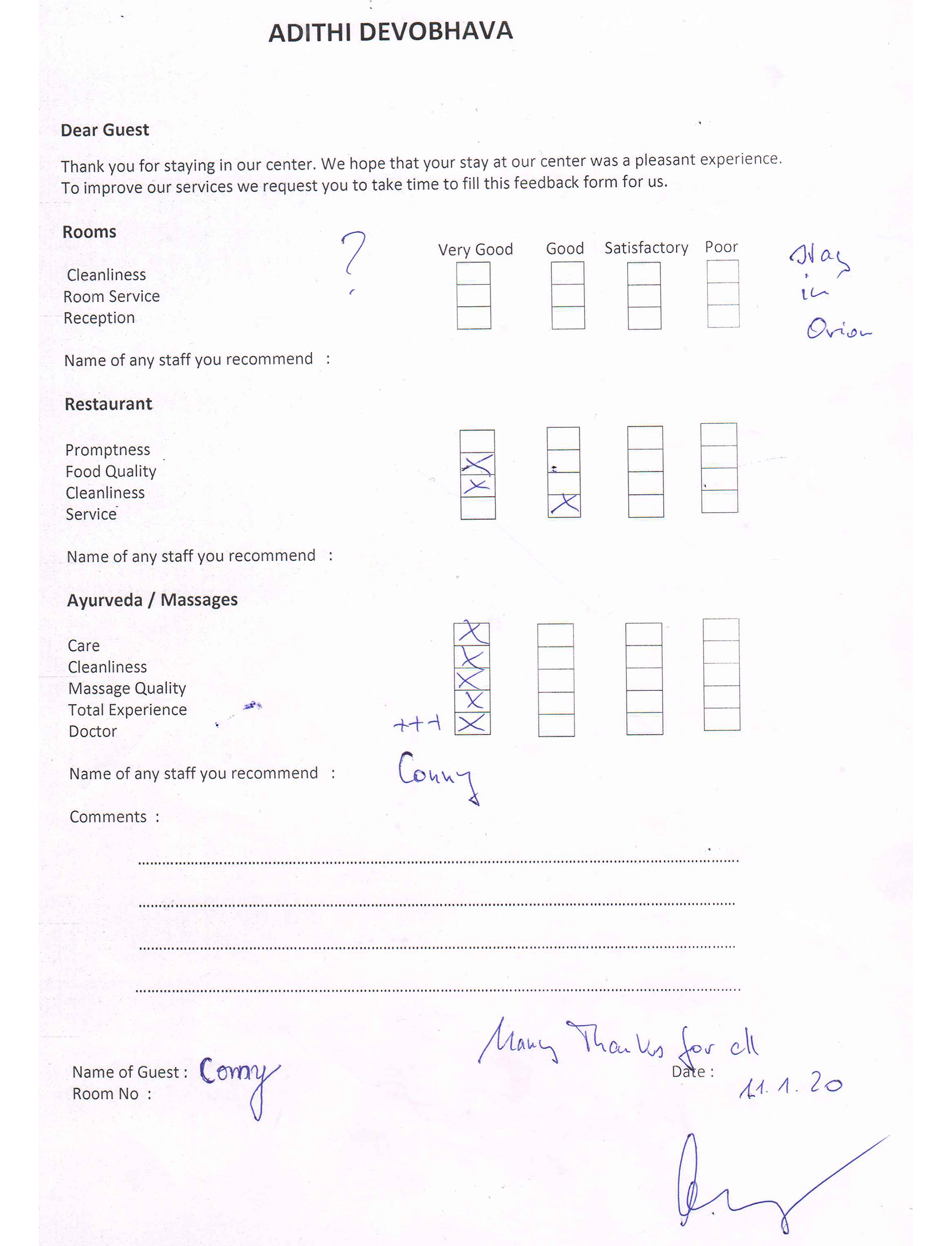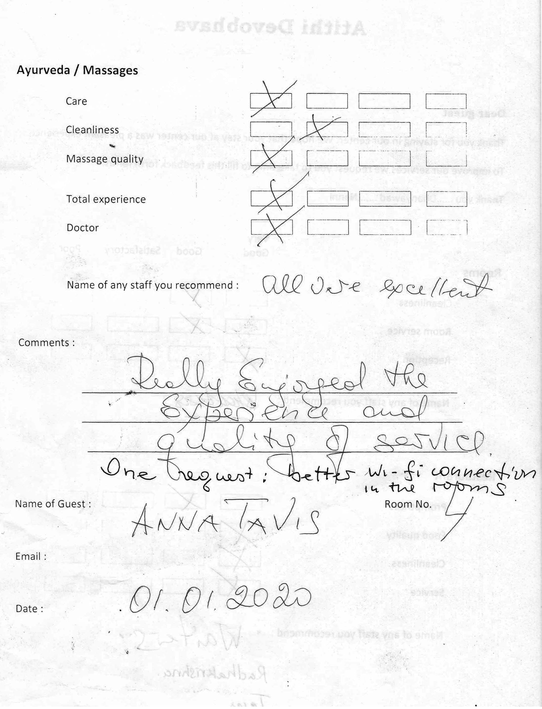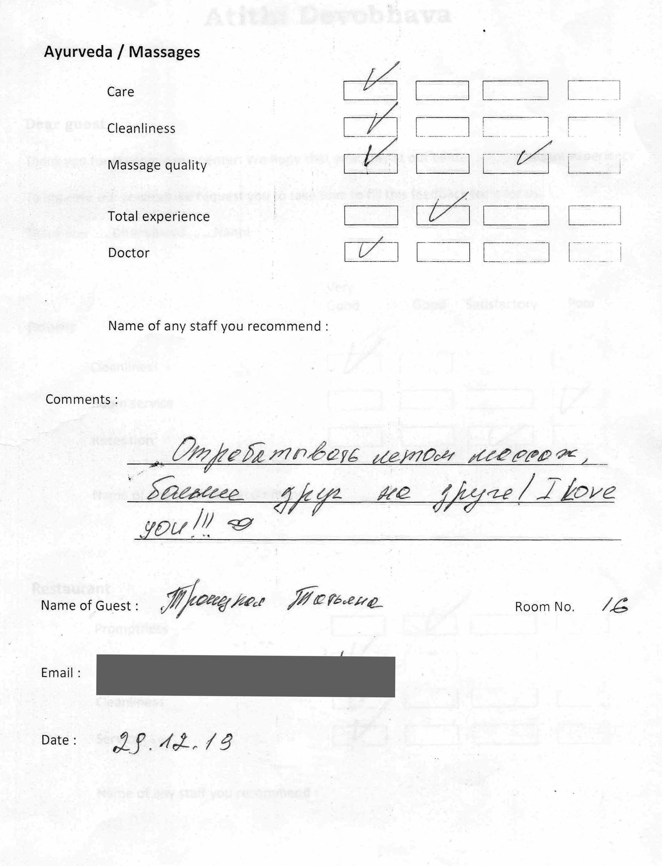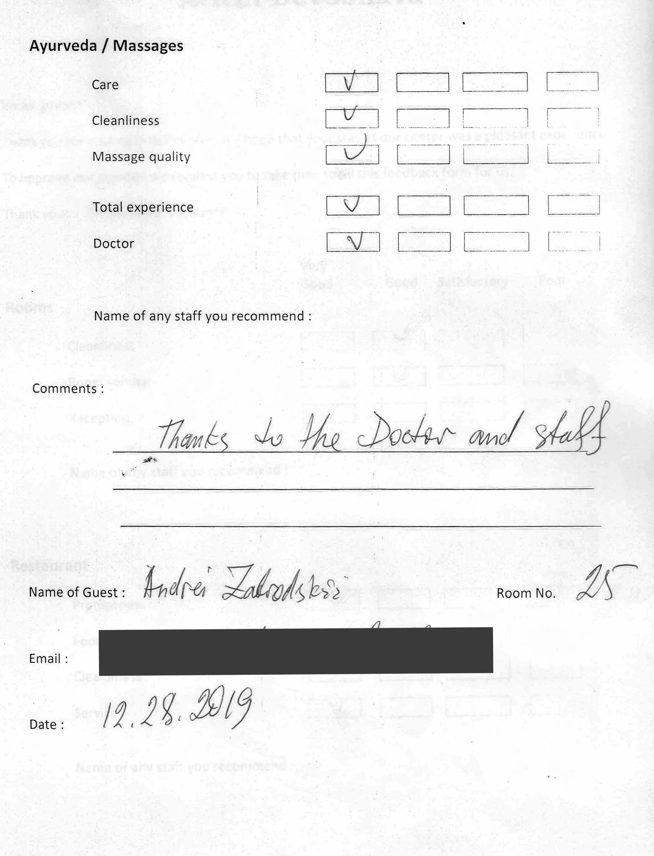 The Arya Ayurvedic Panchakarma Centre is located in Hotel California, only about 2 minutes walking distance from the beach. Our 15 double rooms have a fan, a bath (shower, warm water, WC), and a balcony with view in the luxuriant greenery of our garden and a little lake which has plenty of fish and some water lilies. The hotel is well maintained, has 24 hours security, and the rooms are very clean. The Centre is open the whole year.