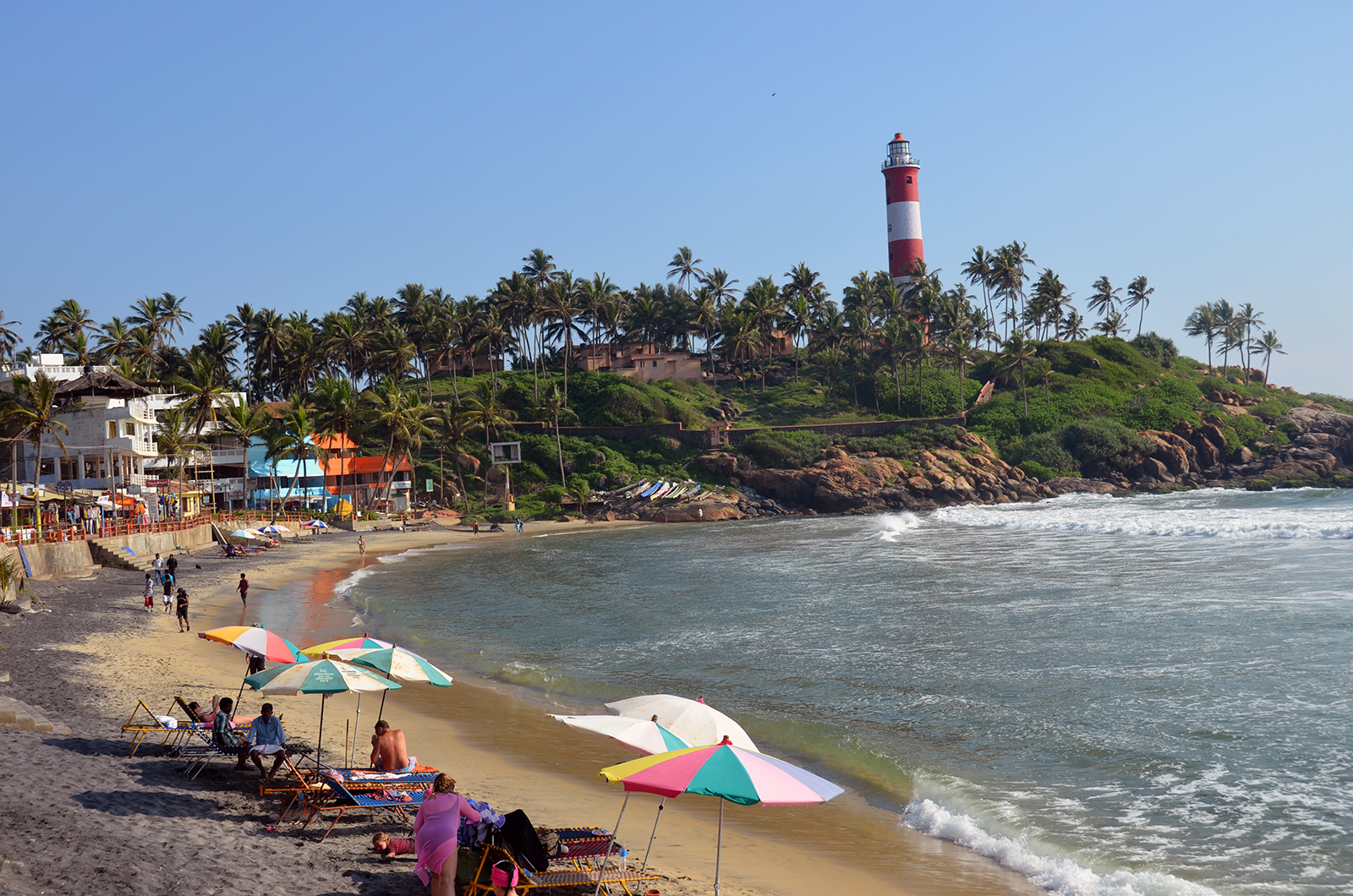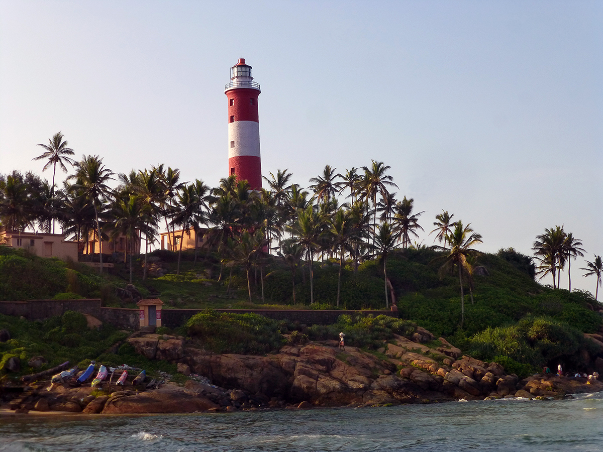 Lighthouse Beach is the southernmost of three successive small crescent beaches in Kovalam, about 15 km south of the International Airport in Trivandrum and 13 km from Trivandrum city.