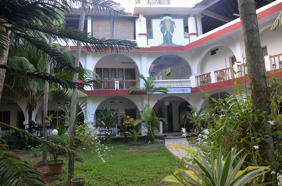 Kovalam is a popular tourist place. The white sand Lighthouse Beach is bordered by hotels, restaurants, and shops. One of the few quiet spots to relax is the garden of Hotel California.